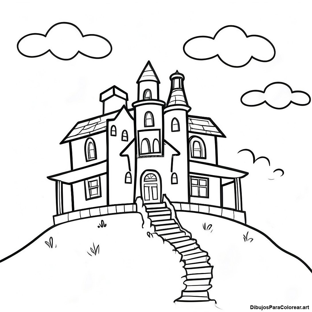 Descargar PDF imprimible de Casa Embrujada En Una Colina Para Colorear