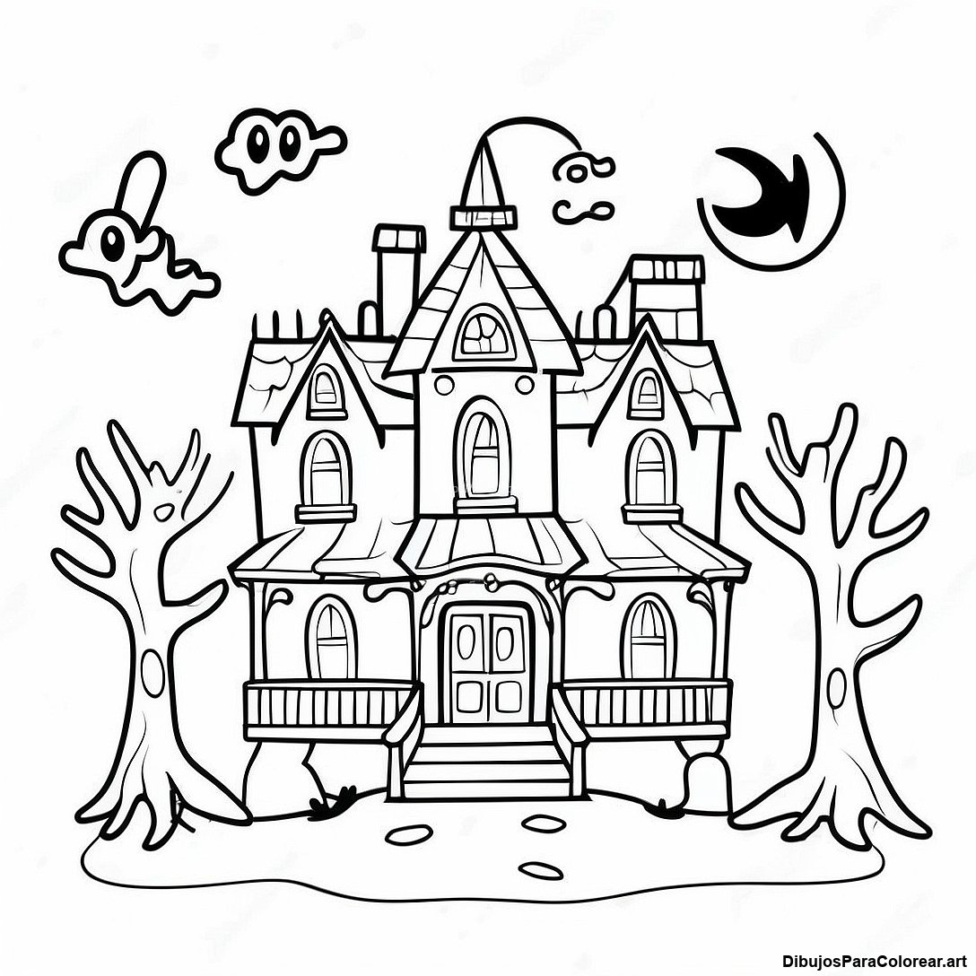 Casa Embrujada Espeluznante Con Fantasmas Para Colorear