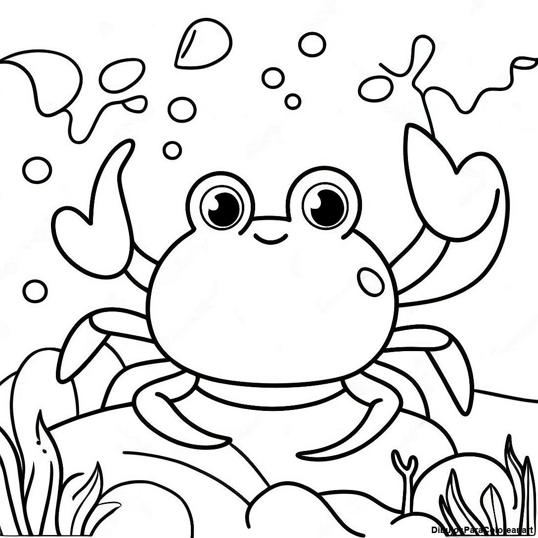 Descargar PDF imprimible de Dibujo Para Colorear De Un Cangrejo Feliz Bajo El Agua