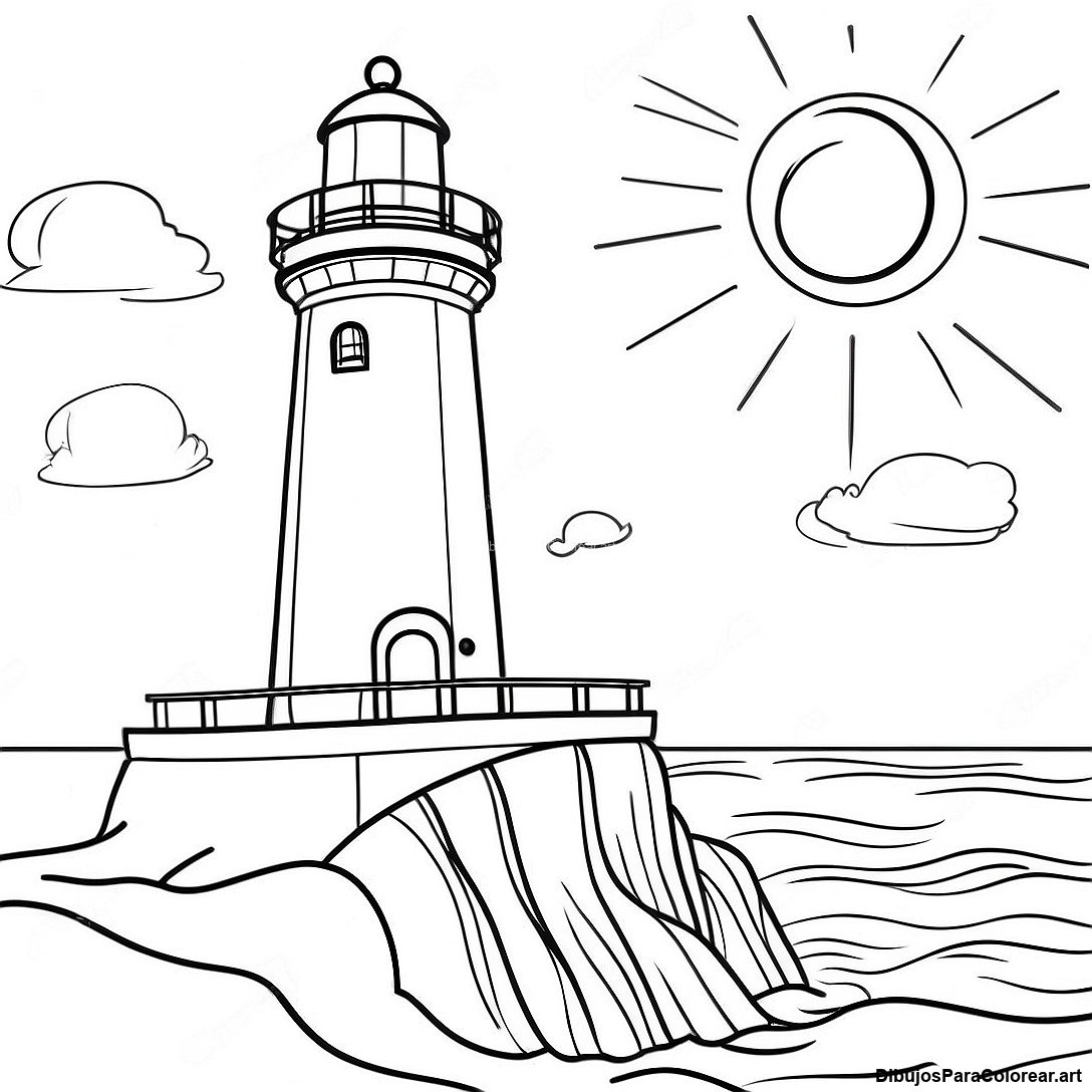 Faro Majestuoso Al Atardecer Pagina Para Colorear