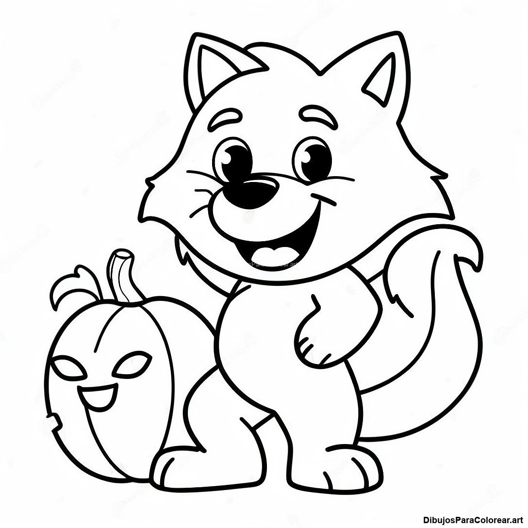Descargar PDF imprimible de Hombre Lobo De Dibujos Animados Sosteniendo Una Calabaza Página Para Colorear