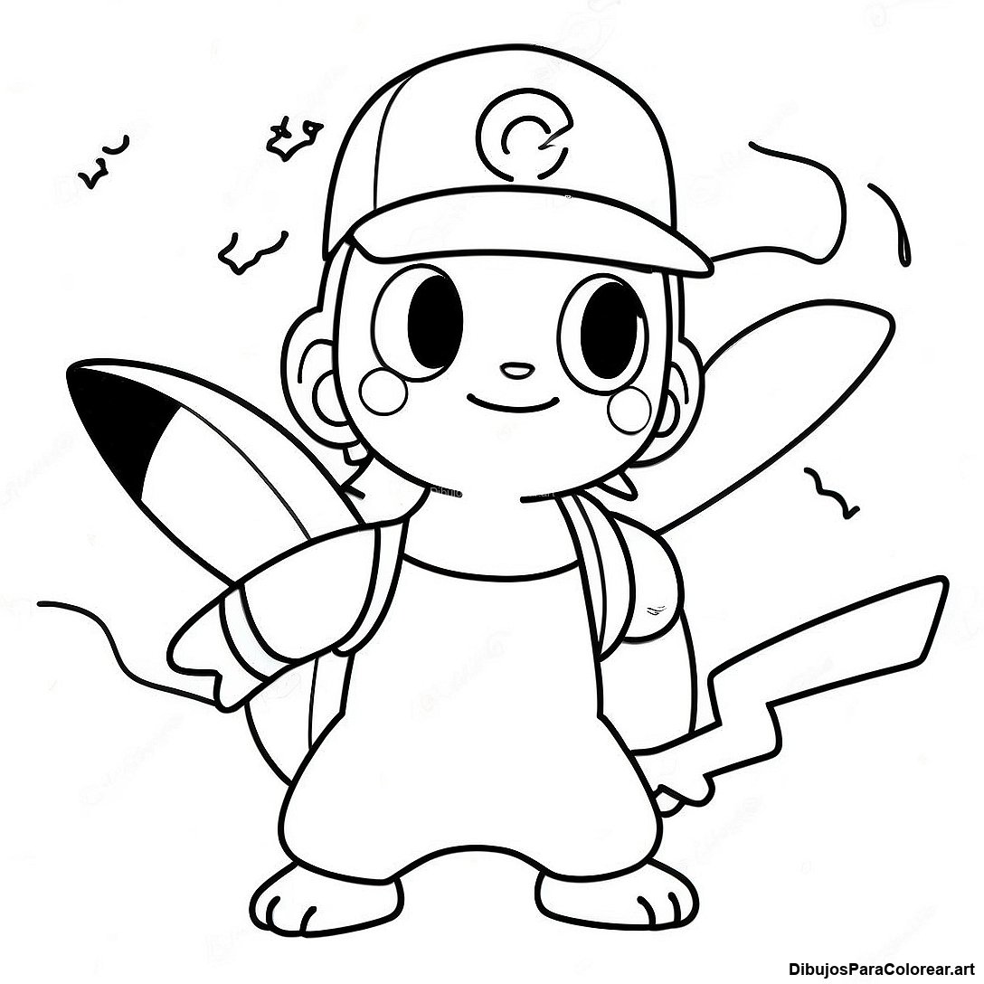 Descargar PDF imprimible de Página Para Colorear De Ash Ketchum Con Pikachu