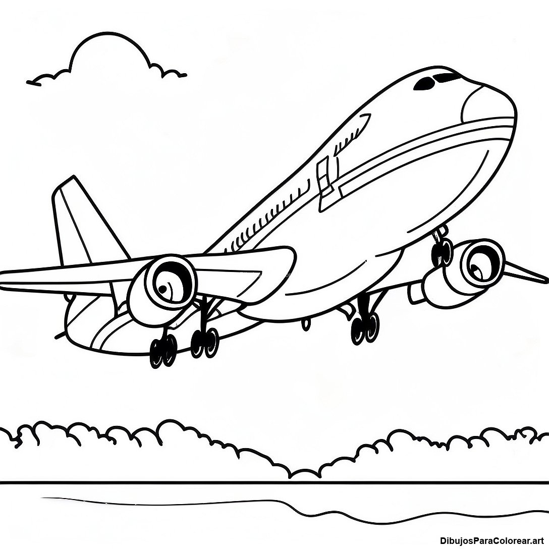 Pagina Para Colorear De Avion 747 Colorido En Vuelo 124174 58314