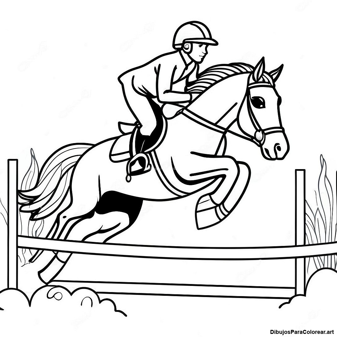 Descargar PDF imprimible de Página Para Colorear De Caballo De Salto De Obstáculos Colorido Con Jinete