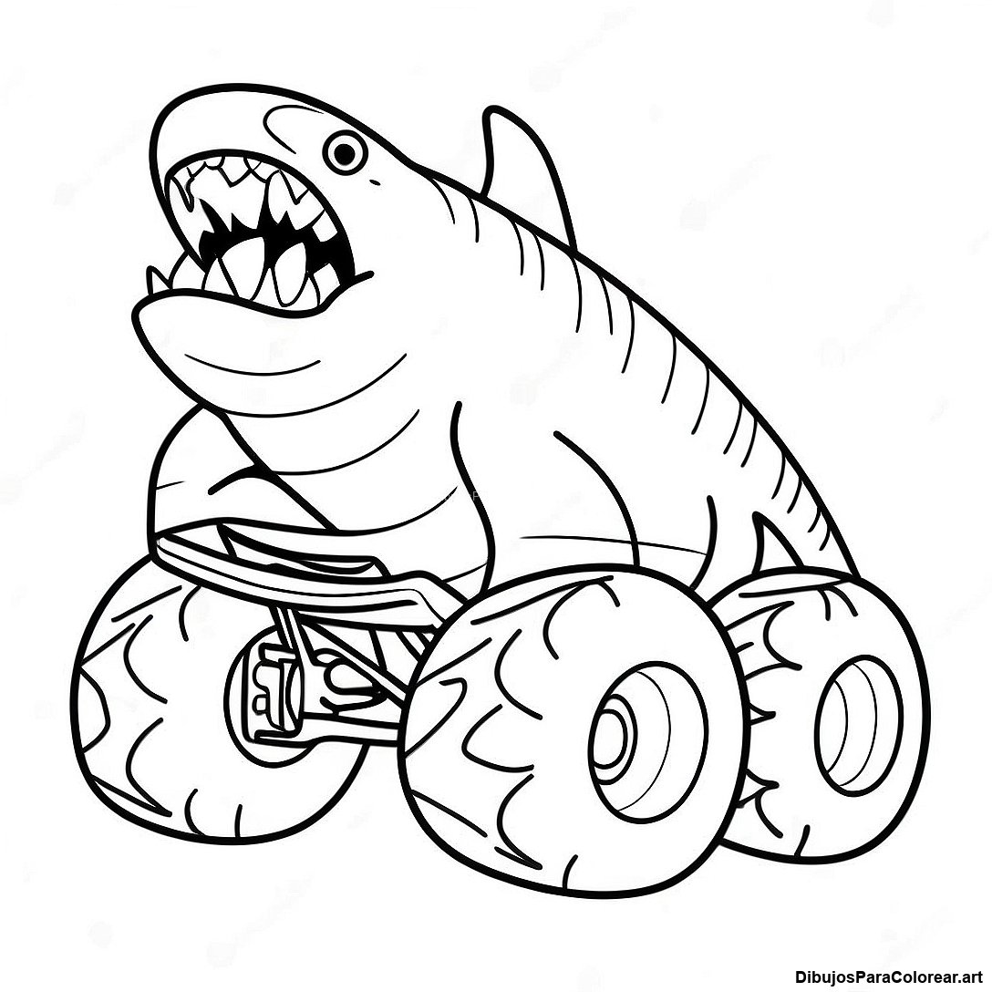 Descargar PDF imprimible de Página Para Colorear De Camión Monstruo Tiburón Feroz