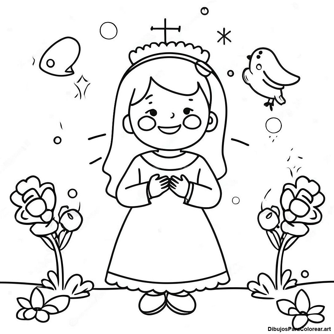 Descargar PDF imprimible de Página Para Colorear De Celebración Alegre De Primera Comunión