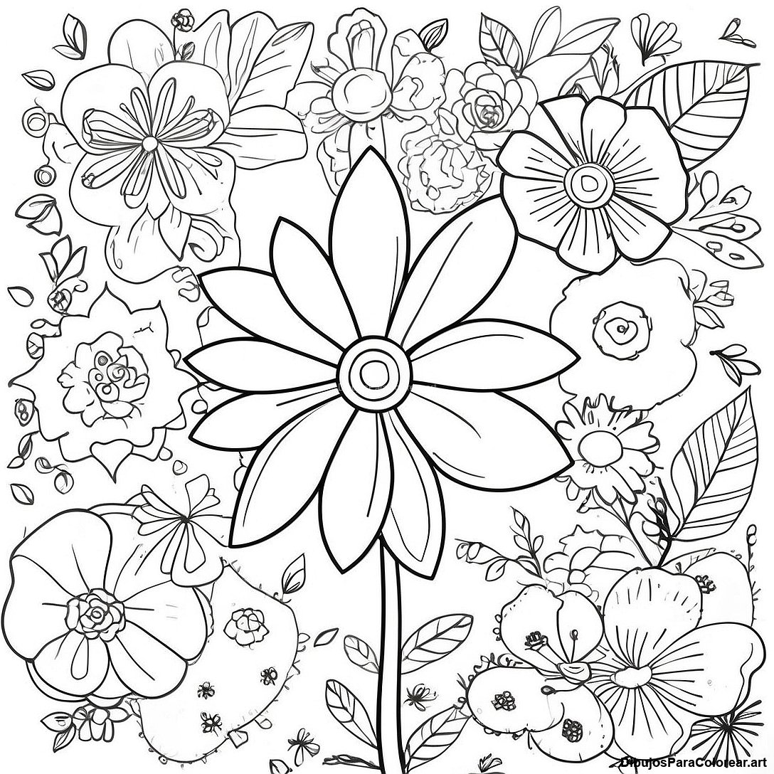 Descargar PDF imprimible de Página Para Colorear De Collage Caprichoso De Flores