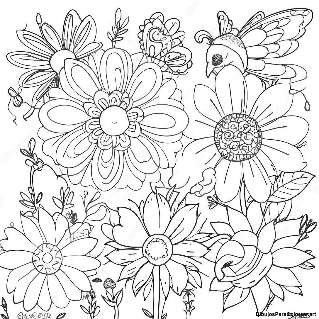 Descargar PDF imprimible de Página Para Colorear De Collage Caprichoso De Flores