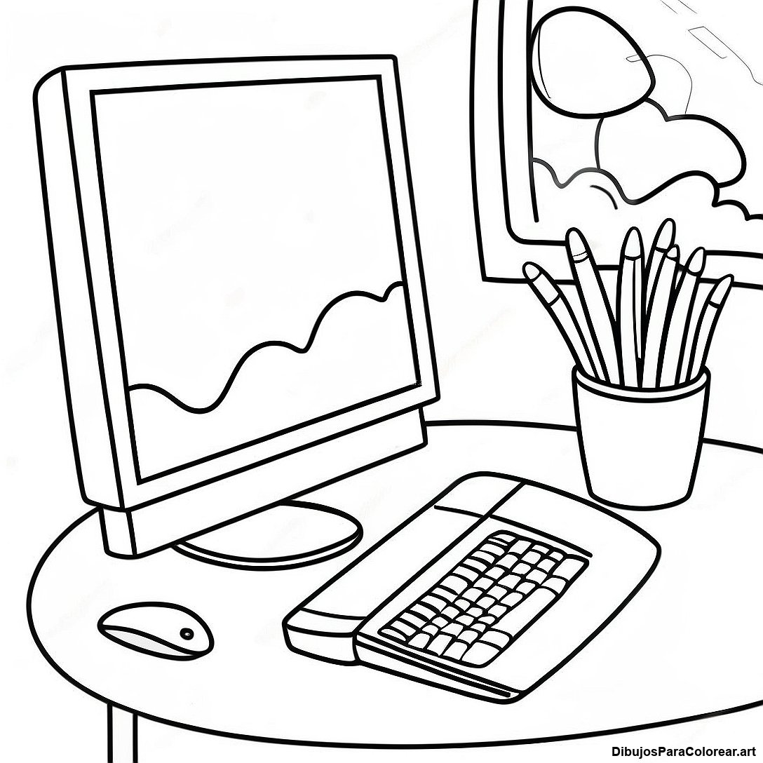 Pagina Para Colorear De Configuracion De Computadora De Escritorio Colorida