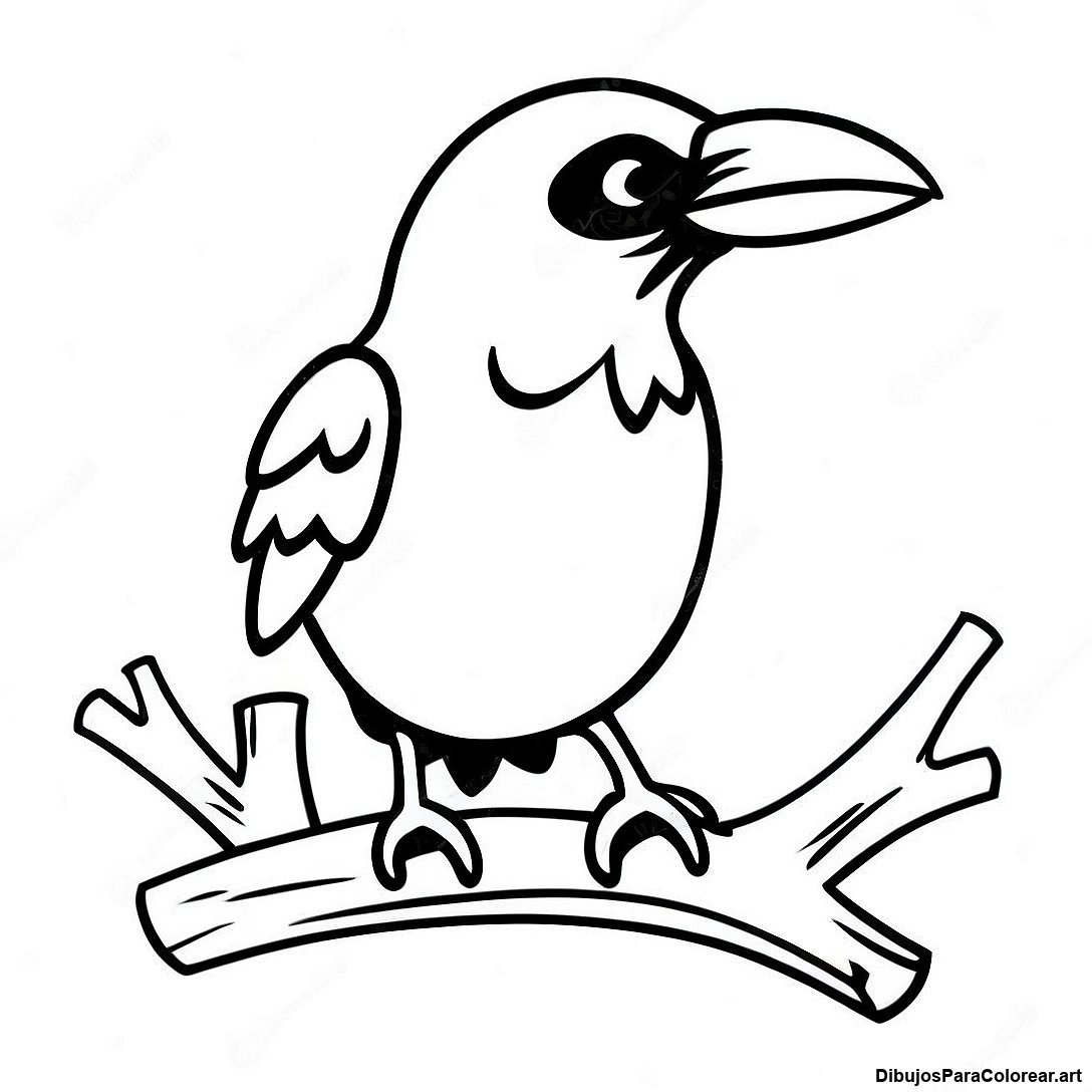 Descargar PDF imprimible de Página Para Colorear De Cuervo Posado En Una Rama