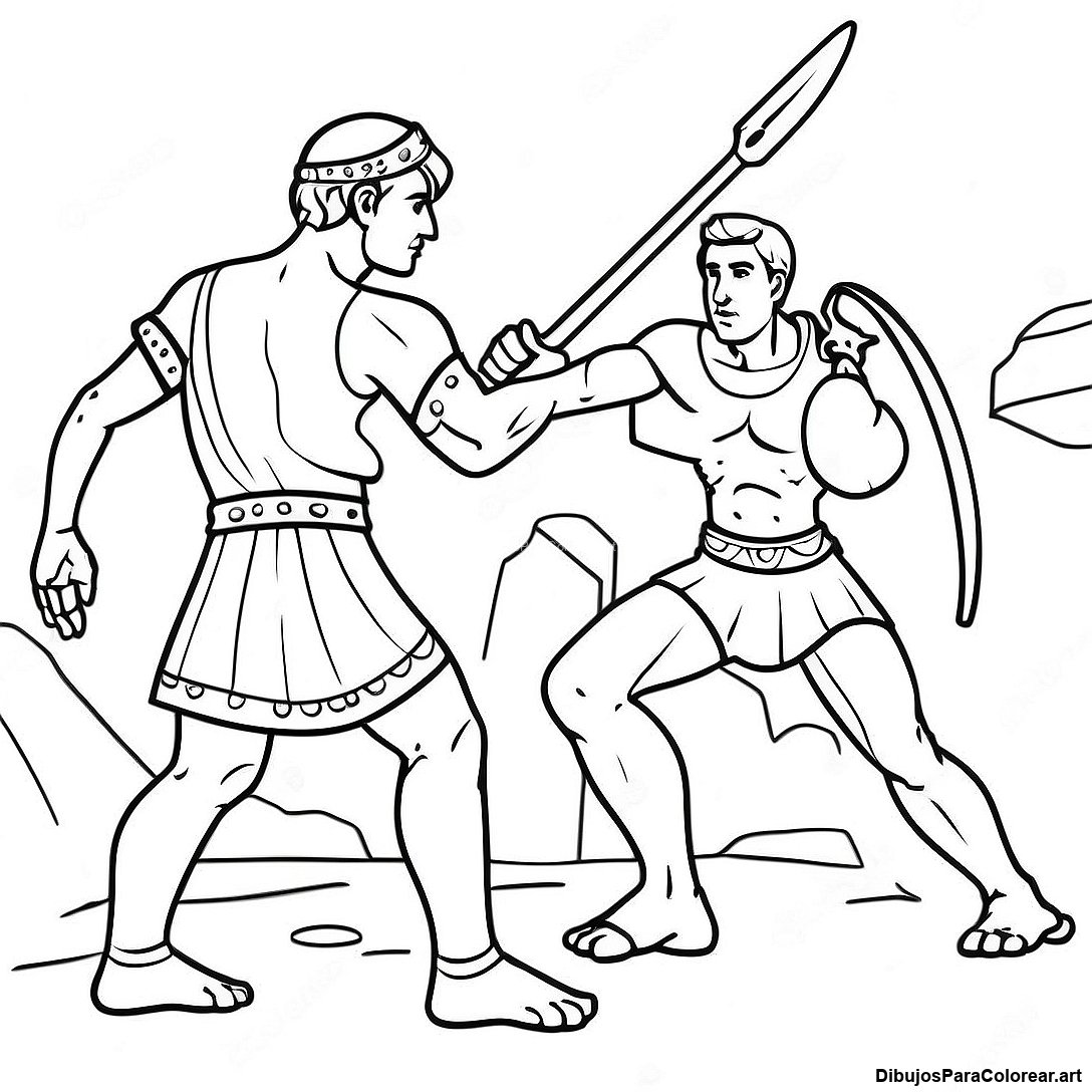 Descargar PDF imprimible de Página Para Colorear De David Valiente Enfrentando A Goliat