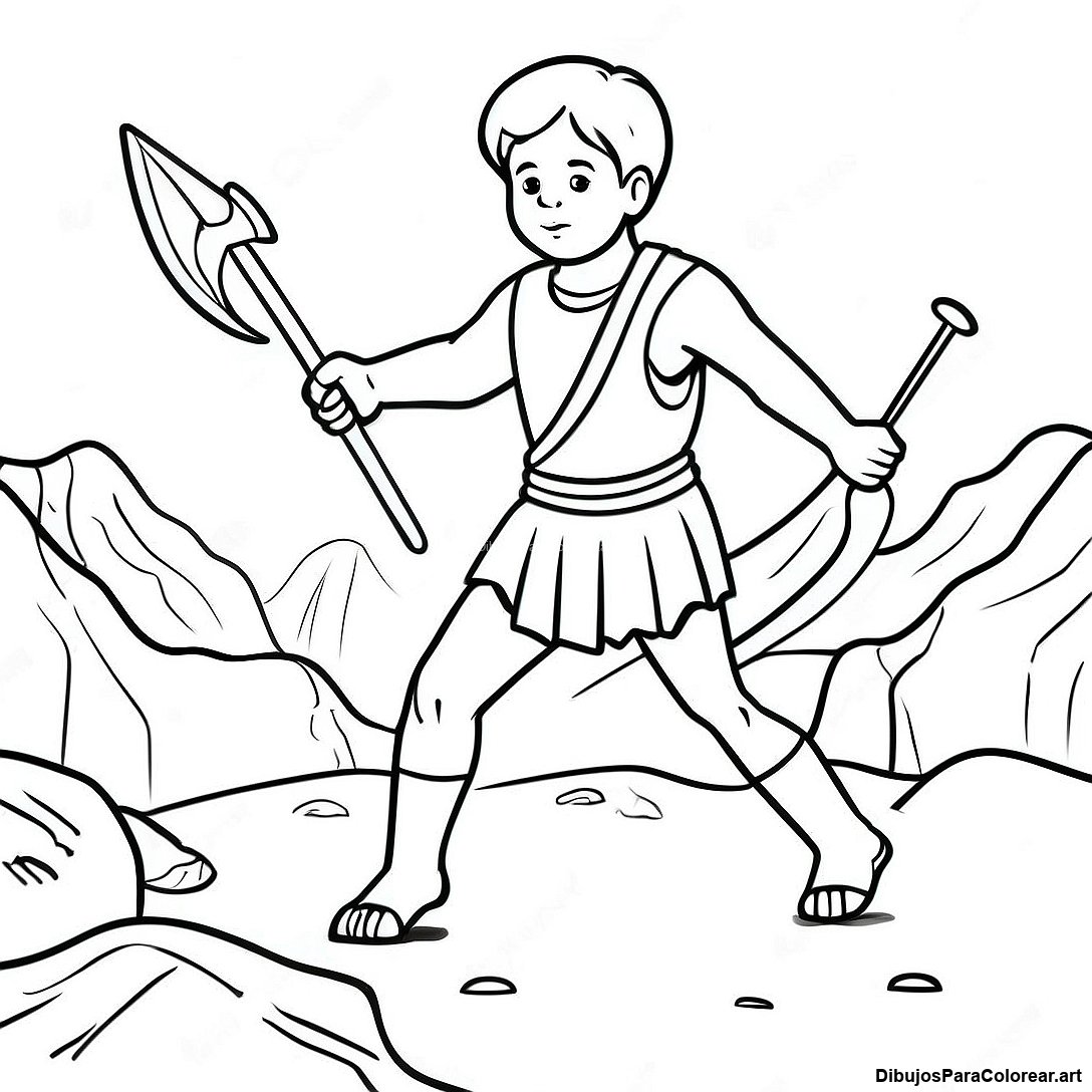 Descargar PDF imprimible de Página Para Colorear De David Valiente Enfrentando A Goliat