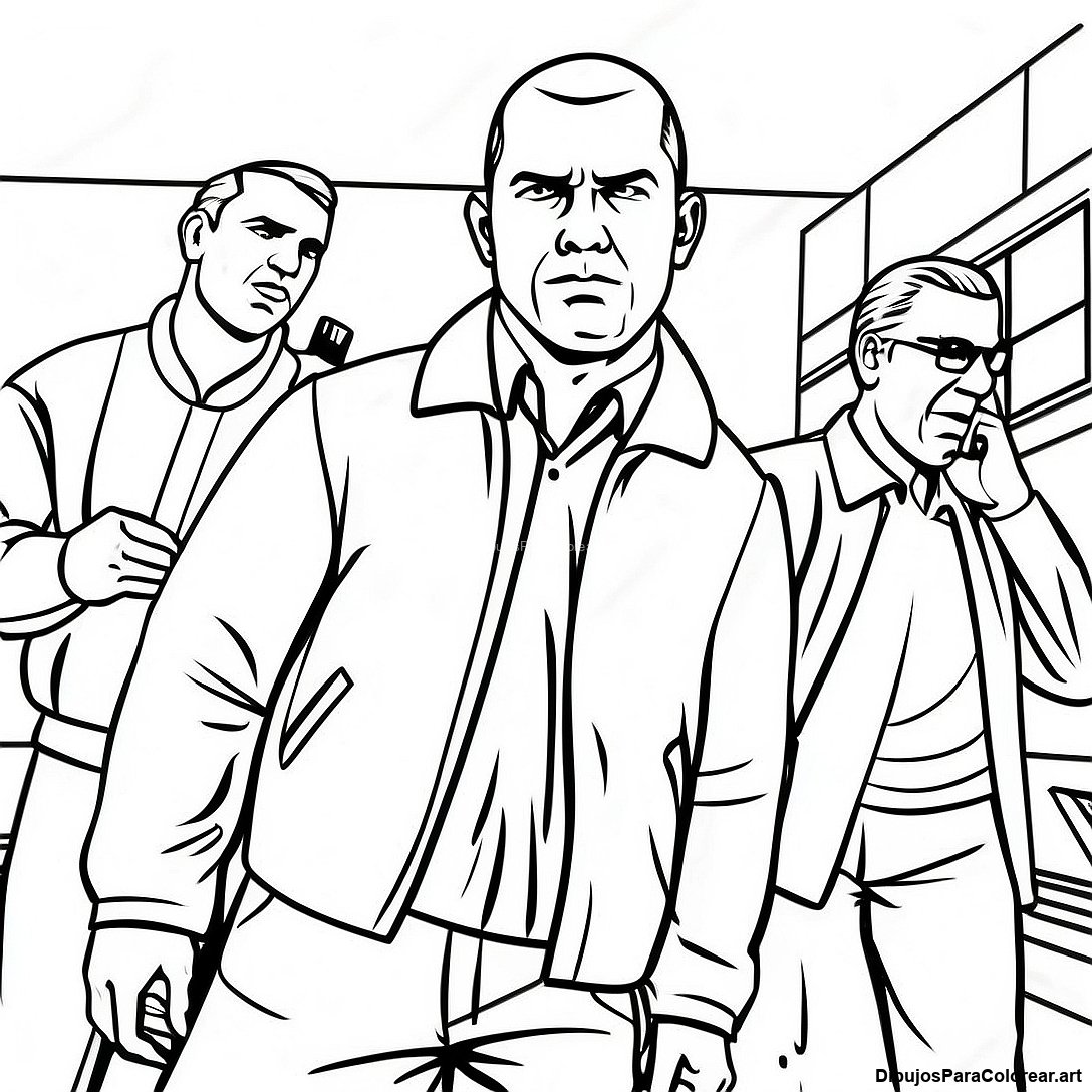 Descargar PDF imprimible de Página Para Colorear De Escena De Atraco De Gta