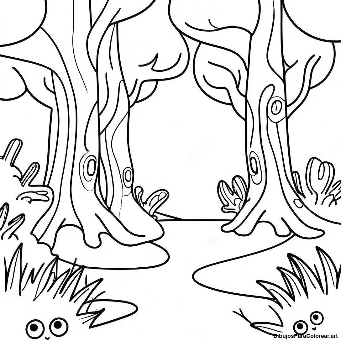 Página Para Colorear De Escena De Bosque Estética Y Caprichosa