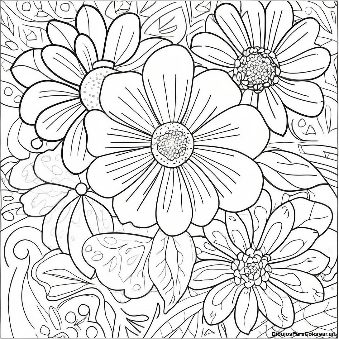 Descargar PDF imprimible de Página Para Colorear De Flores Coloridas En Flor
