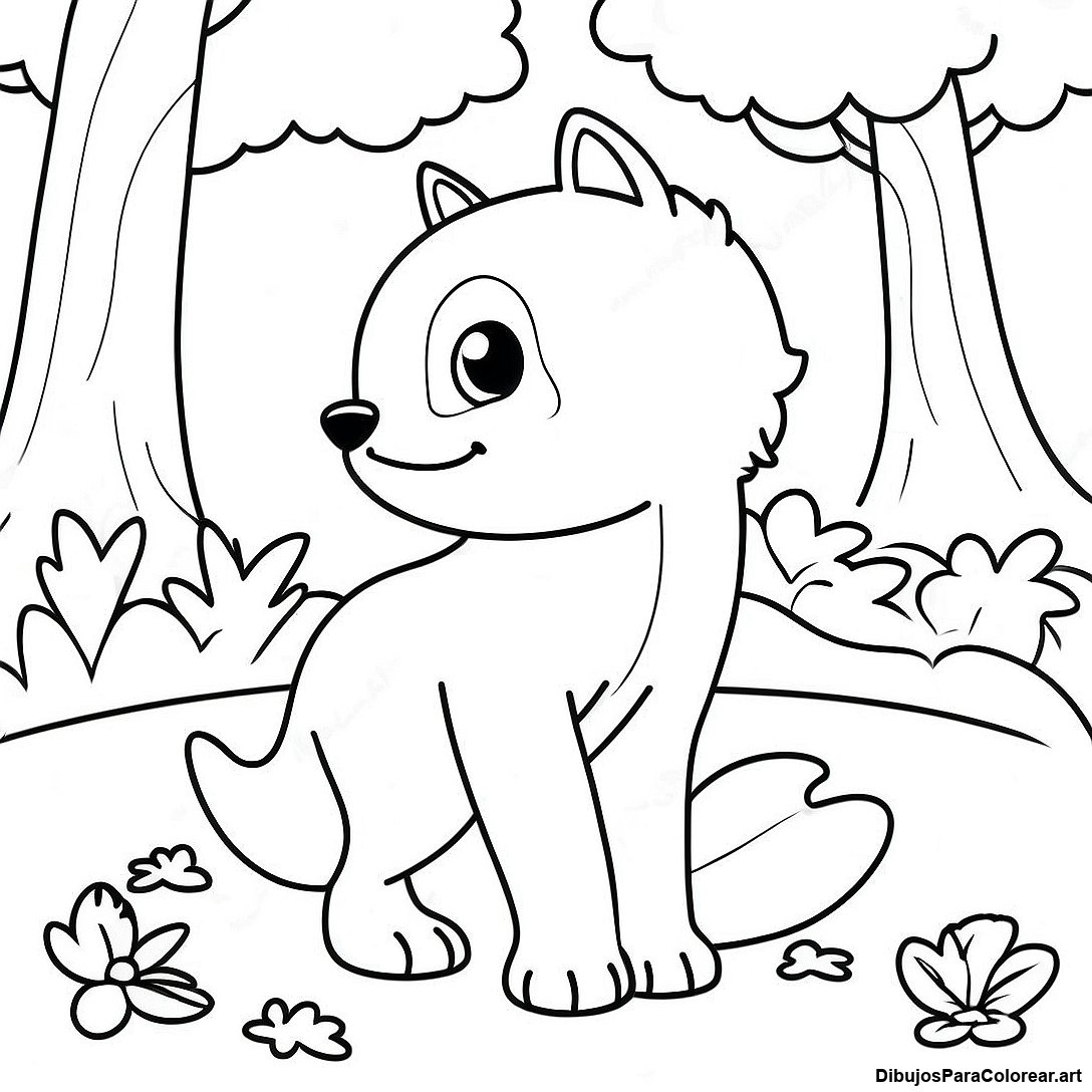 Página Para Colorear De Hábitat De Animales Del Bosque Lindo