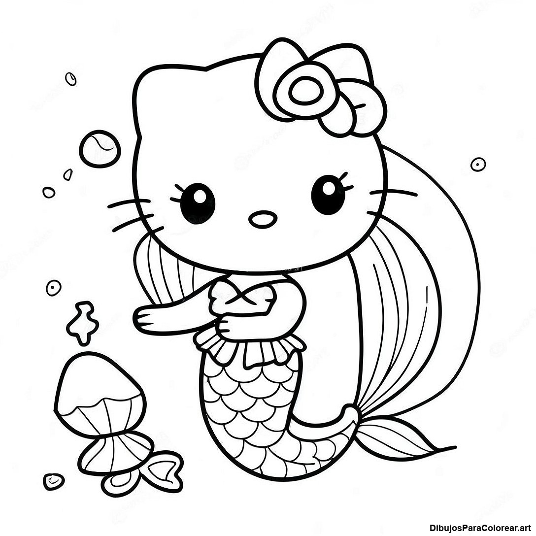 Descargar PDF imprimible de Página Para Colorear De La Elegante Hello Kitty Sirena Con Conchas