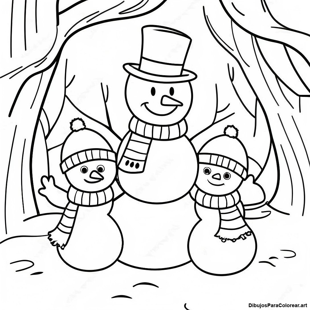 Pagina Para Colorear De La Familia De Munecos De Nieve En Un Pais De Invierno