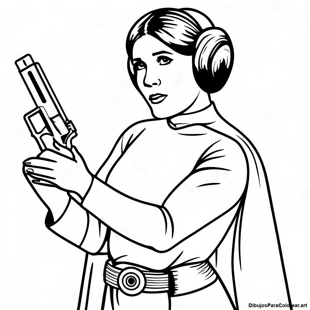Descargar PDF imprimible de Página Para Colorear De La Princesa Leia Con Bláster