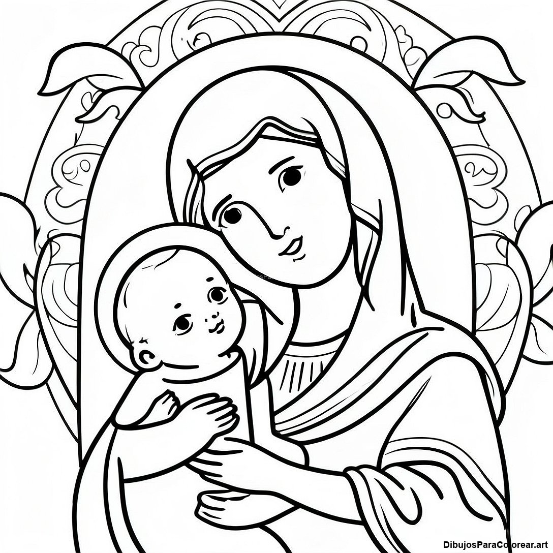 Descargar PDF imprimible de Página Para Colorear De La Virgen María Y El Niño Jesús