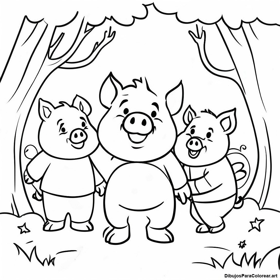 Página Para Colorear De Los Tres Cerditos Y El Gran Lobo Malo