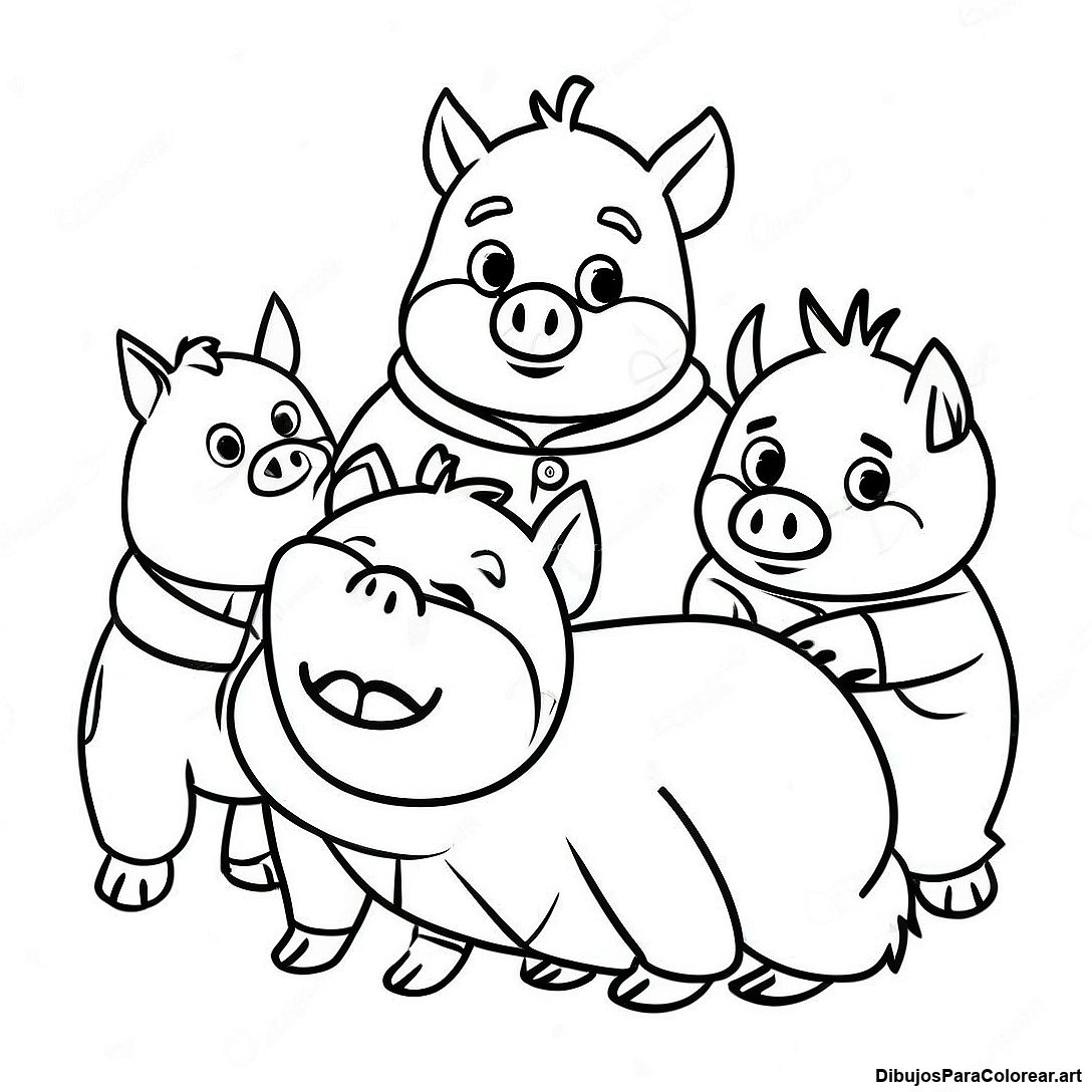 Descargar PDF imprimible de Página Para Colorear De Los Tres Cerditos Y El Gran Lobo Malo