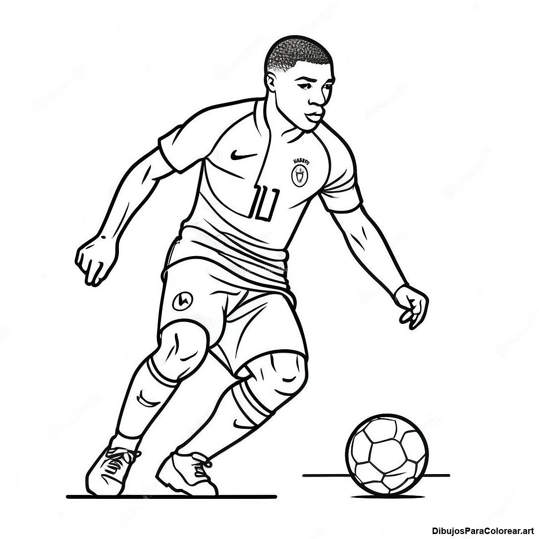 Descargar PDF imprimible de Página Para Colorear De Mbappe Driblando El Balón