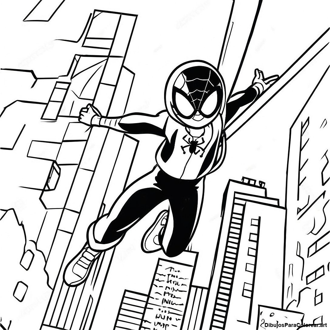Descargar PDF imprimible de Página Para Colorear De Miles Morales Balanceándose Por La Ciudad