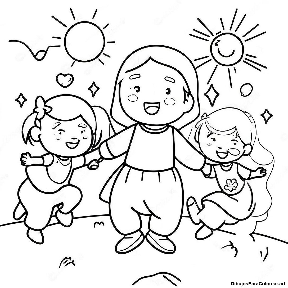 Página Para Colorear De Niños Alegres Jugando Con Jesús