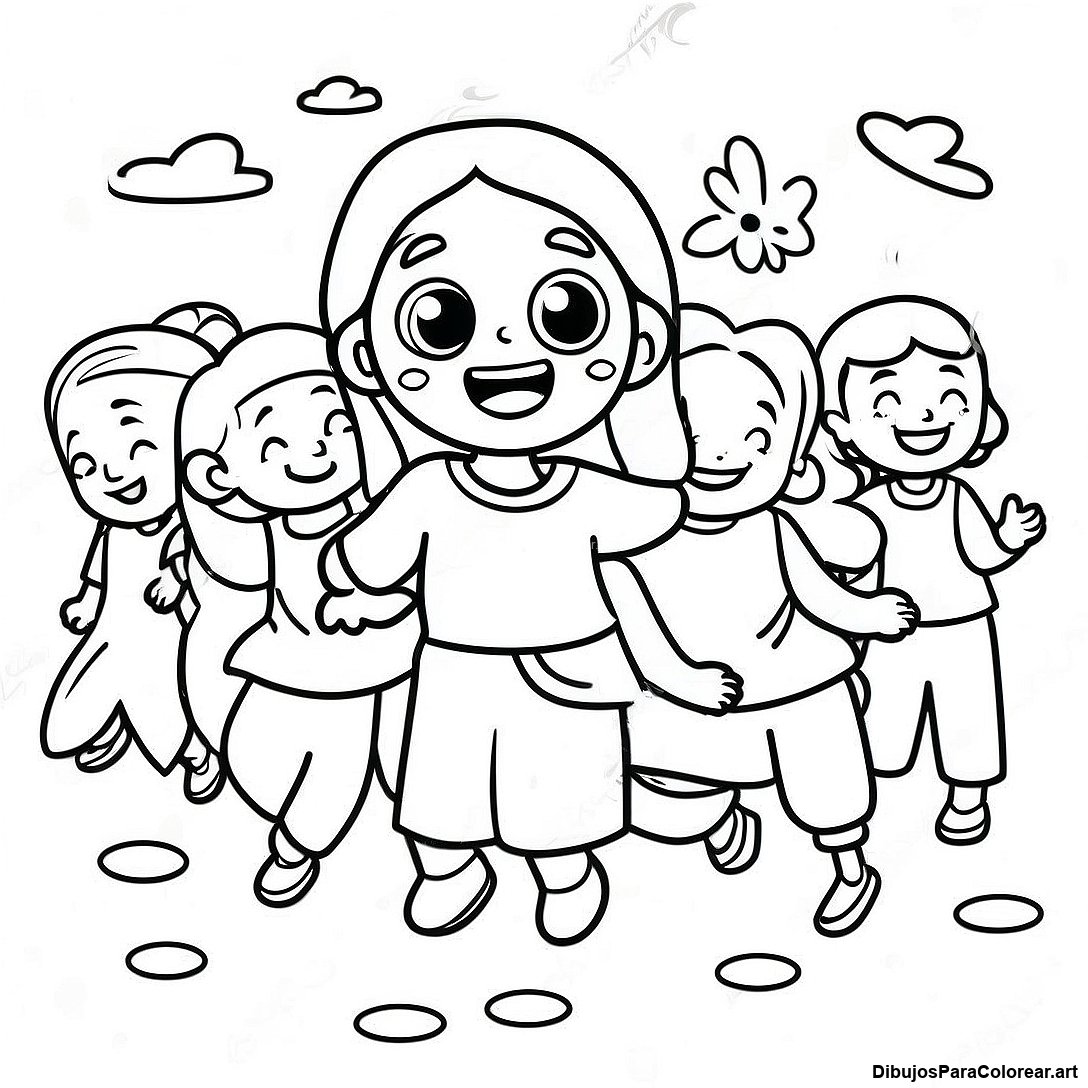 Descargar PDF imprimible de Página Para Colorear De Niños Felices Con Jesús