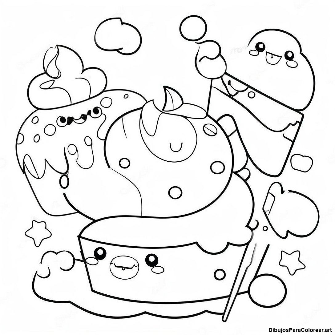 Página Para Colorear De Num Noms Adorables Con Cupcakes