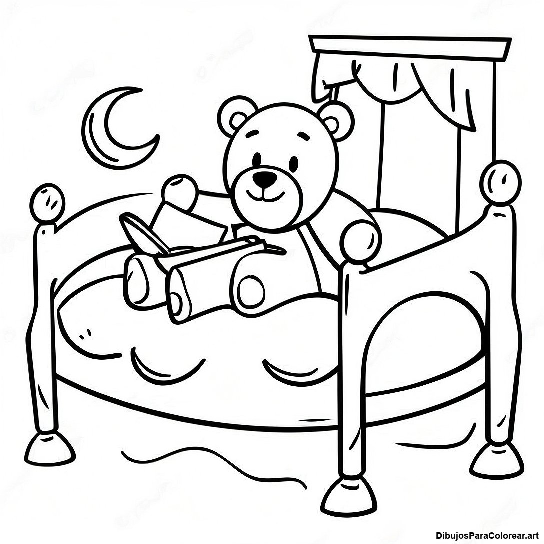 Descargar PDF imprimible de Página Para Colorear De Oso De Peluche Dormilón En Una Cama