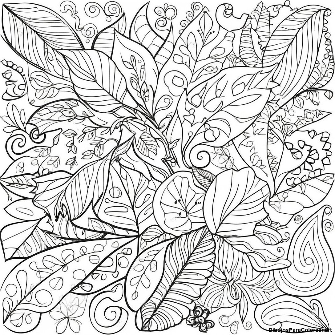 Descargar PDF imprimible de Página Para Colorear De Patrones De Hojas Caprichosos