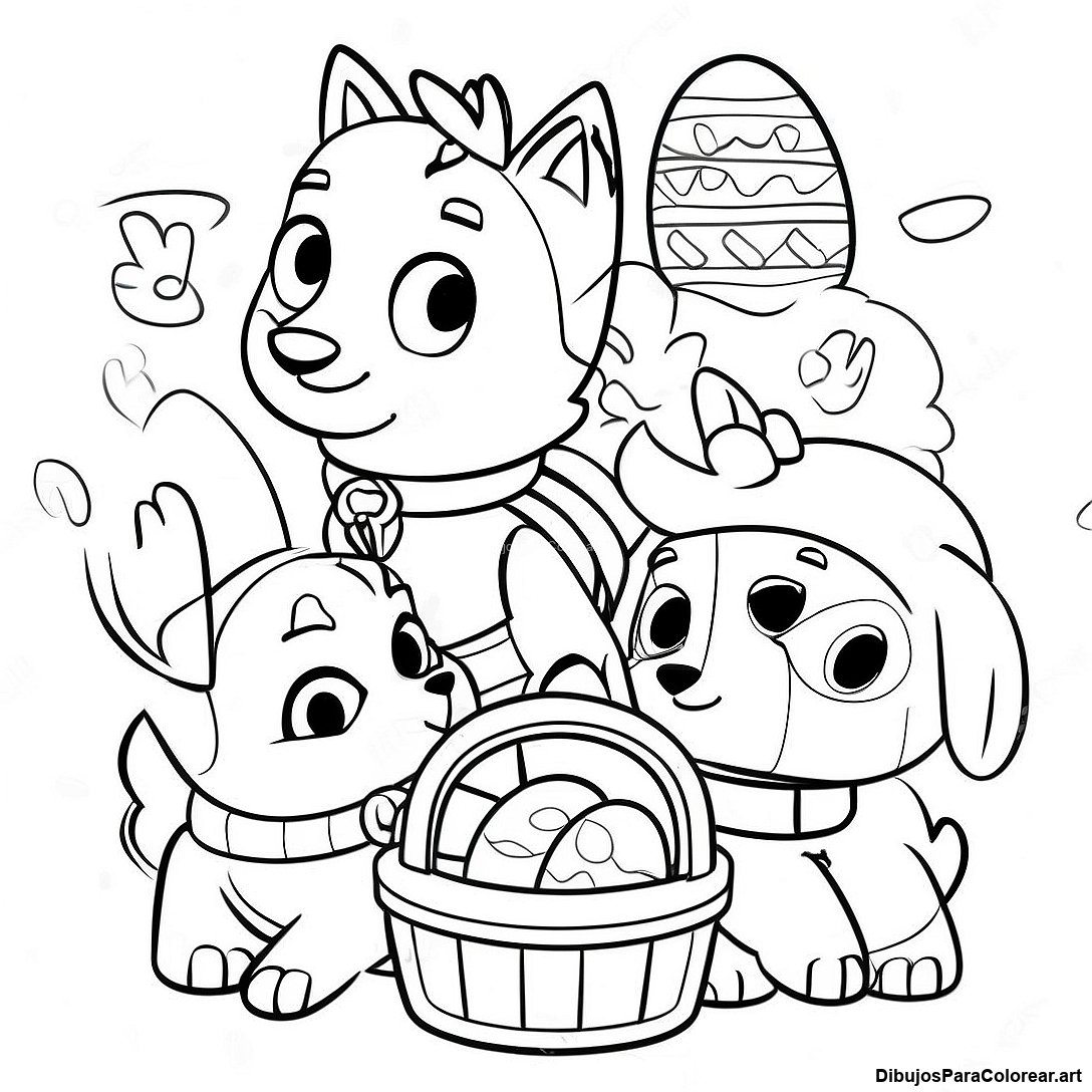 Descargar PDF imprimible de Página Para Colorear De Personajes Coloridos De Paw Patrol Con Cestas De Pascua
