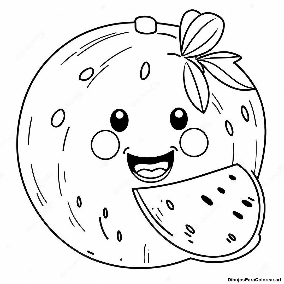 Descargar PDF imprimible de Página Para Colorear De Sandía Linda Con Una Sonrisa