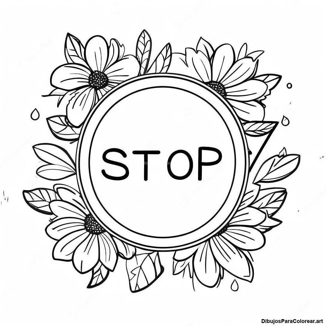 Descargar PDF imprimible de Página Para Colorear De Señal De Alto Rodeada De Flores