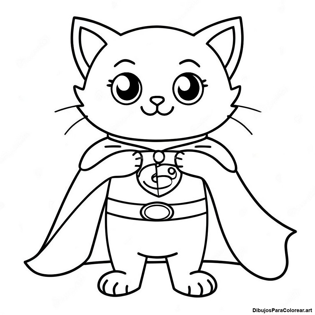 Descargar PDF imprimible de Página Para Colorear De Súper Gatito Con Capa