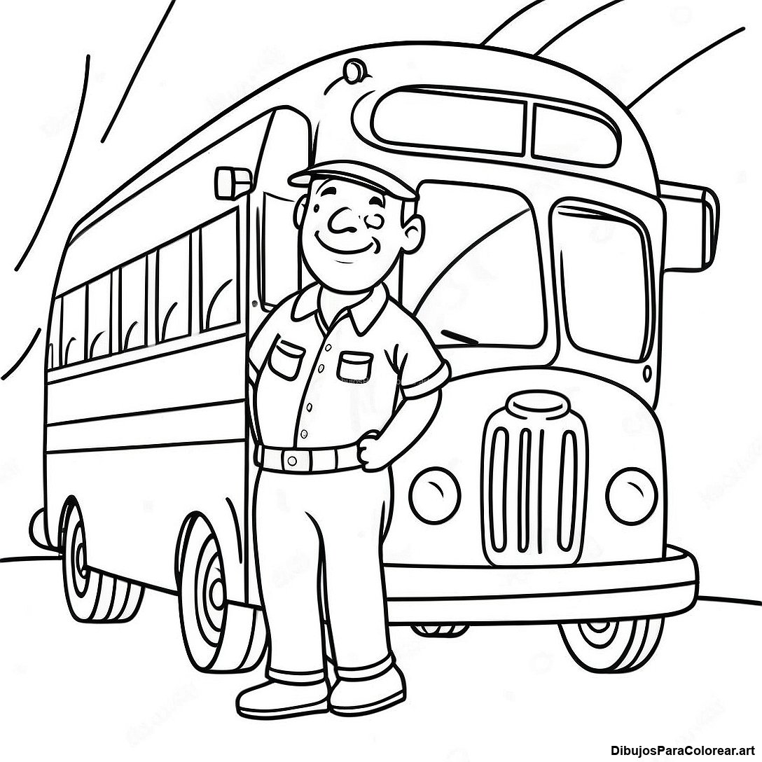 Pagina Para Colorear De Tarjeta De Agradecimiento Al Conductor De Autobus Amigable