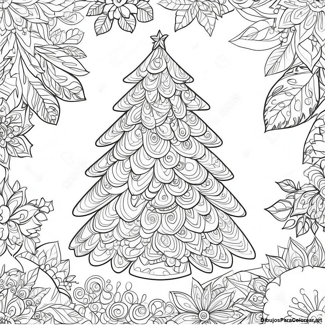 Descargar PDF imprimible de Página Para Colorear De Un Árbol De Navidad Intrincado