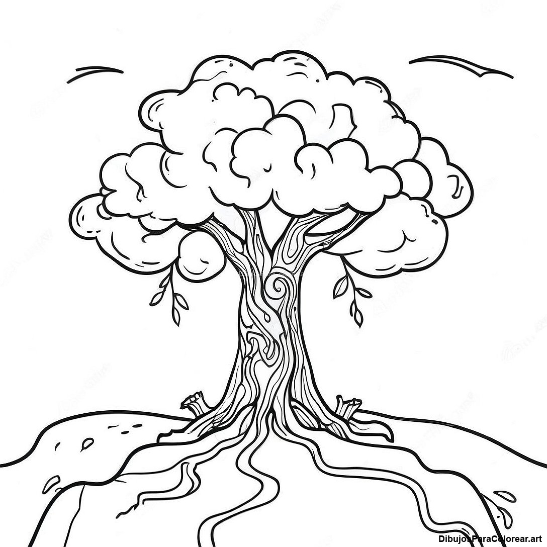 Descargar PDF imprimible de Página Para Colorear De Un Árbol Solitario En Un Cielo Tormentoso