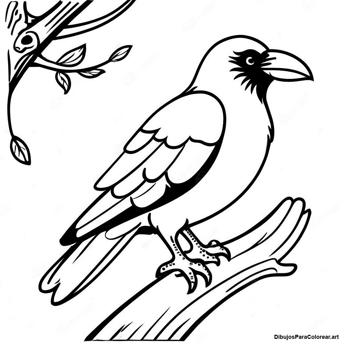 Página Para Colorear De Un Cuervo Posado En Una Rama