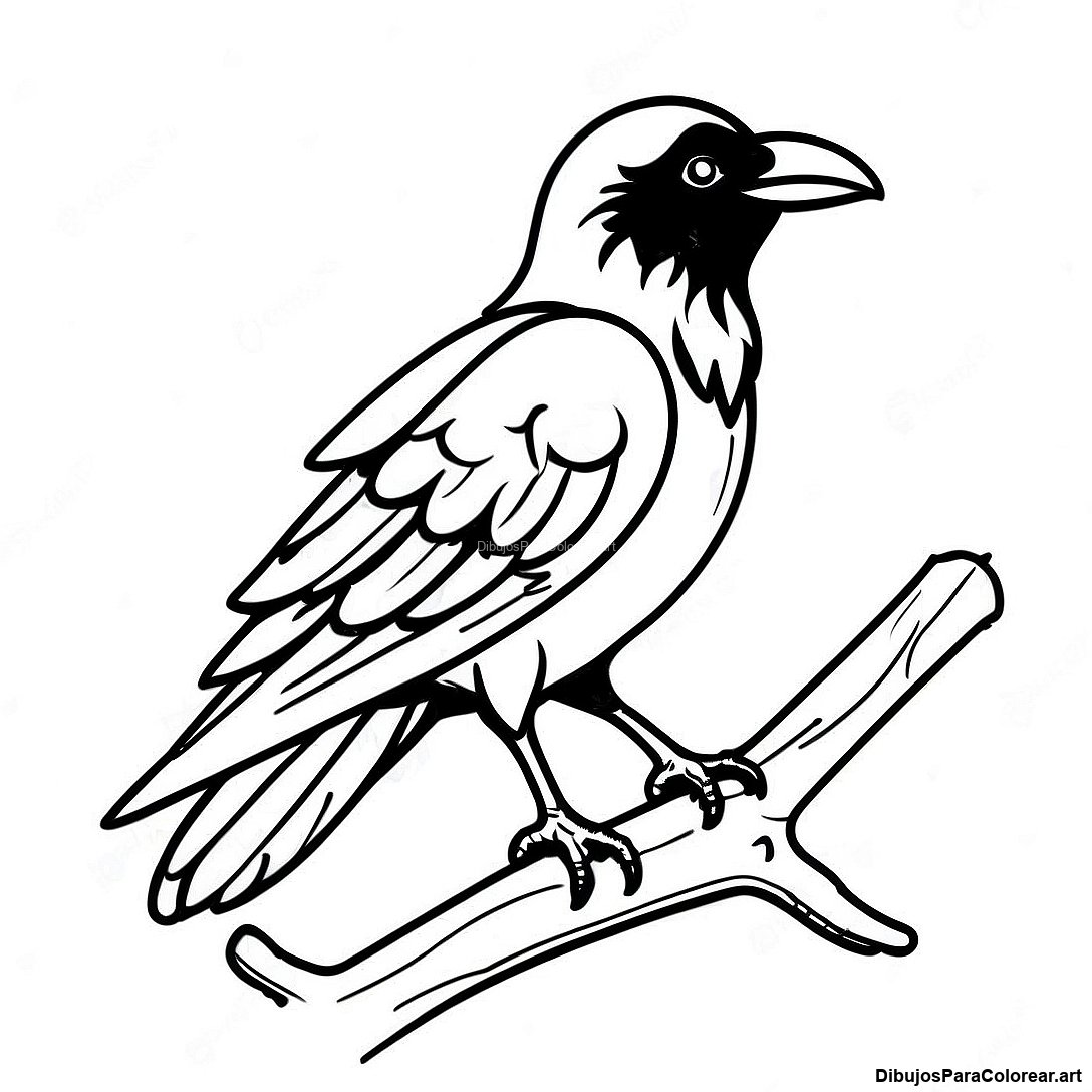 Página Para Colorear De Un Cuervo Posado En Una Rama
