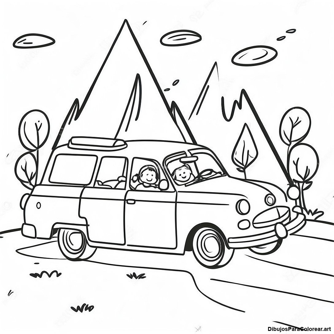 Descargar PDF imprimible de Página Para Colorear De Un Divertido Viaje Familiar Por Carretera