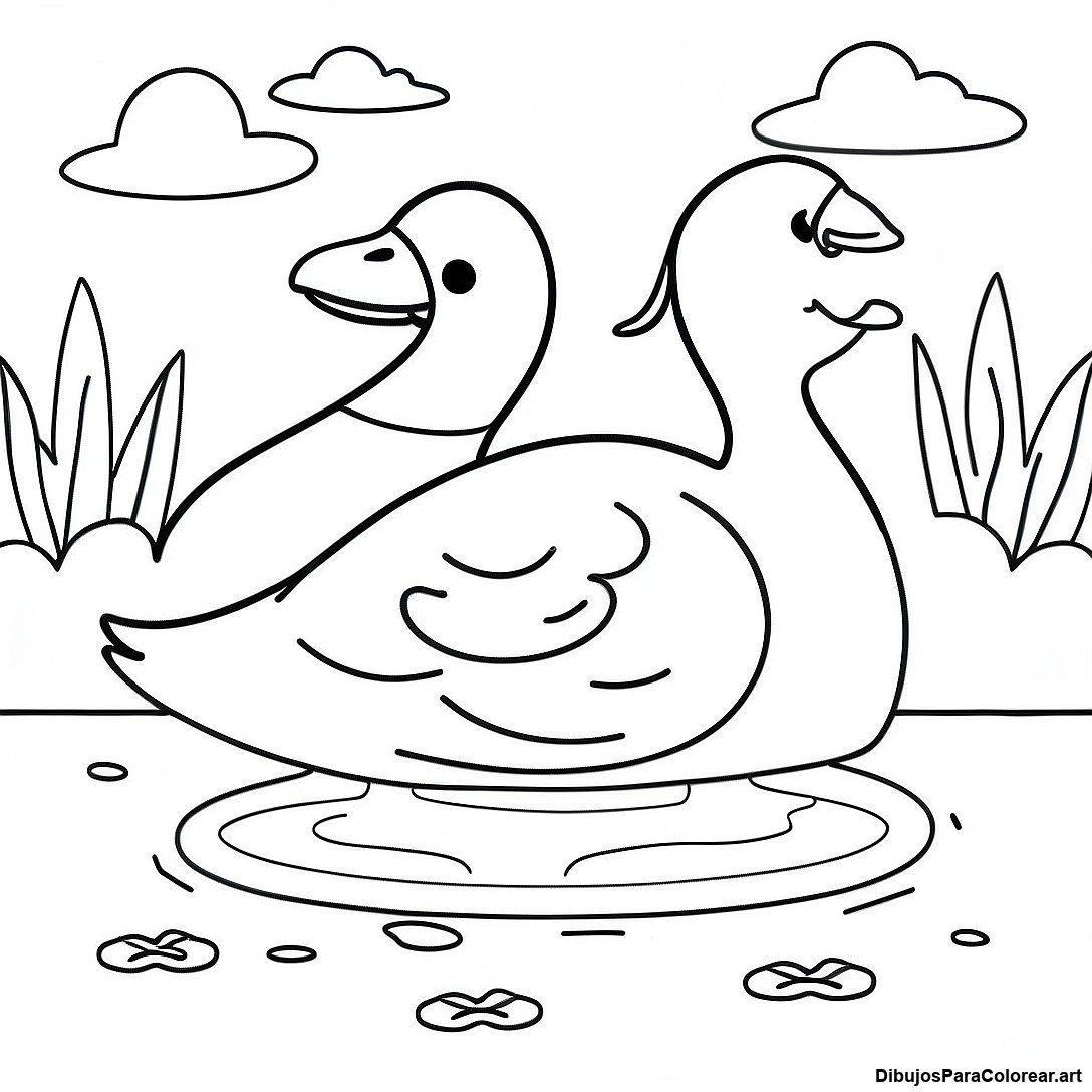 Descargar PDF imprimible de Página Para Colorear De Un Ganso Nadando En Un Estanque