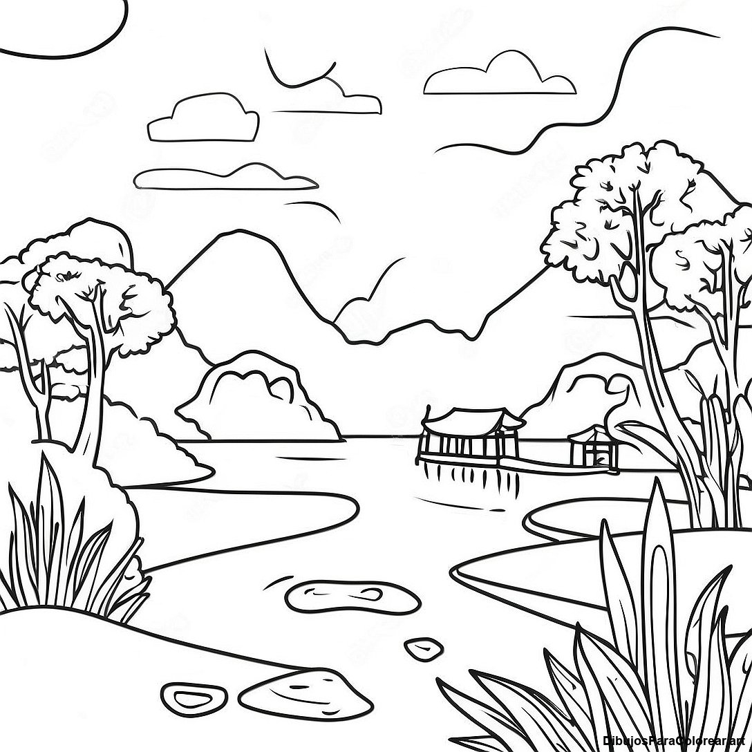 Pagina Para Colorear De Un Hermoso Paisaje Asiatico