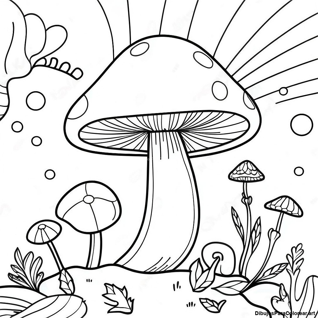 Descargar PDF imprimible de Página Para Colorear De Un Hongo Psicodélico Colorido