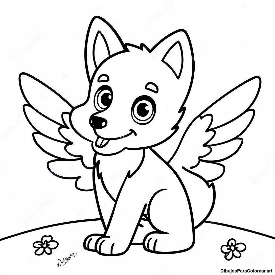 Página Para Colorear De Un Lindo Bebé Lobo Con Alas Coloridas