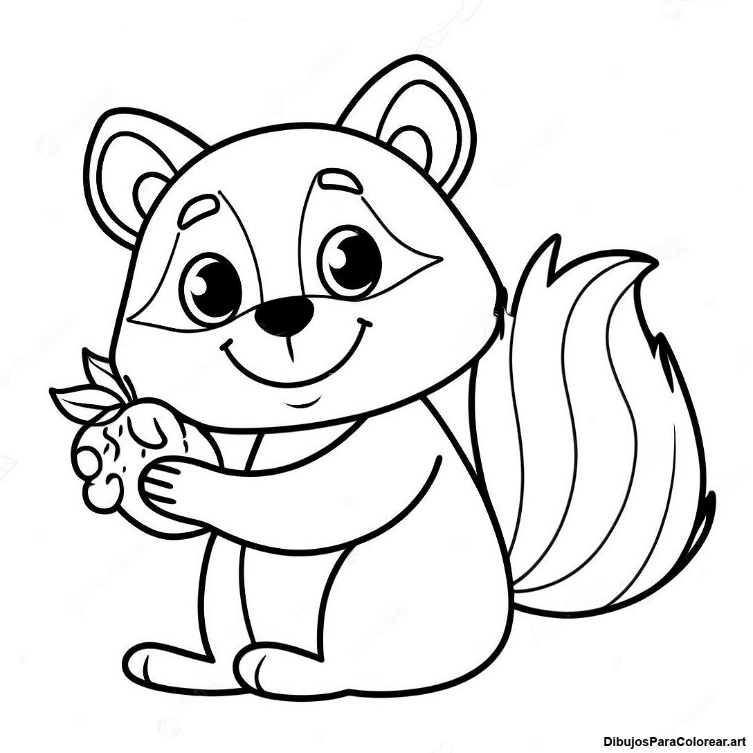 Página Para Colorear De Un Mapache Sosteniendo Una Baya