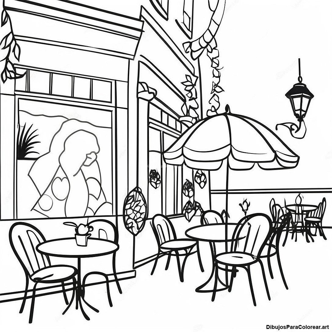 Descargar PDF imprimible de Página Para Colorear De Un Patio De Restaurante Al Aire Libre