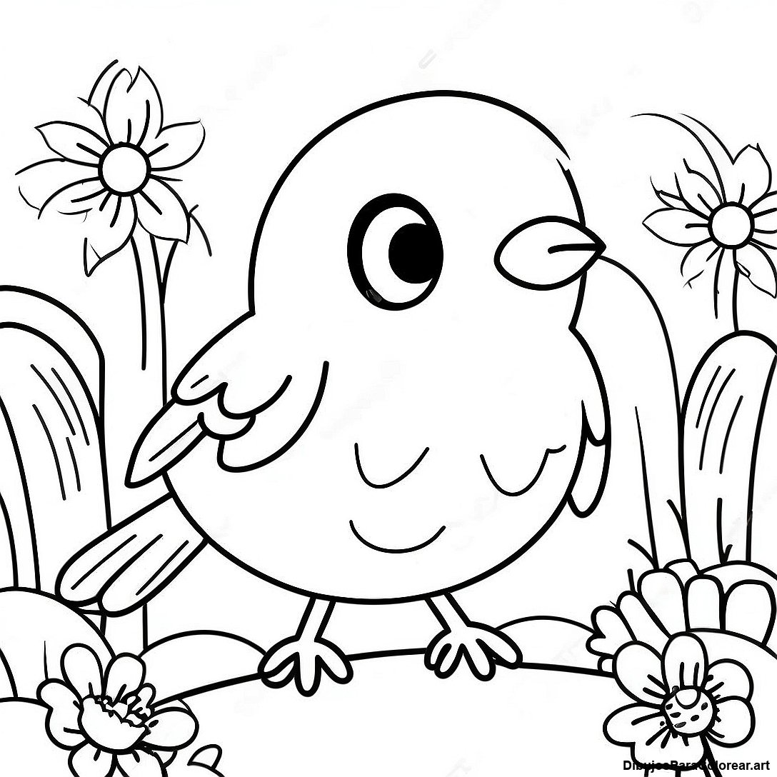 Descargar PDF imprimible de Página Para Colorear De Un Petirrojo Feliz En Primavera